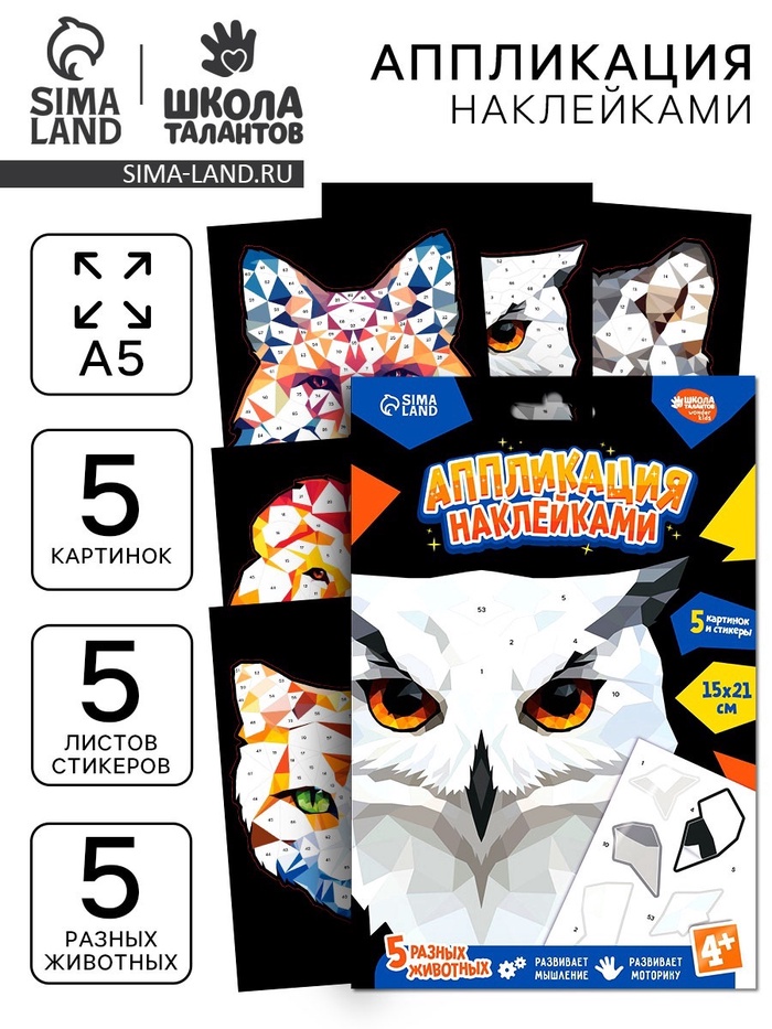 Этот набор позволяет создавать яркие и выразительные изображения животных с помощью наклеек.