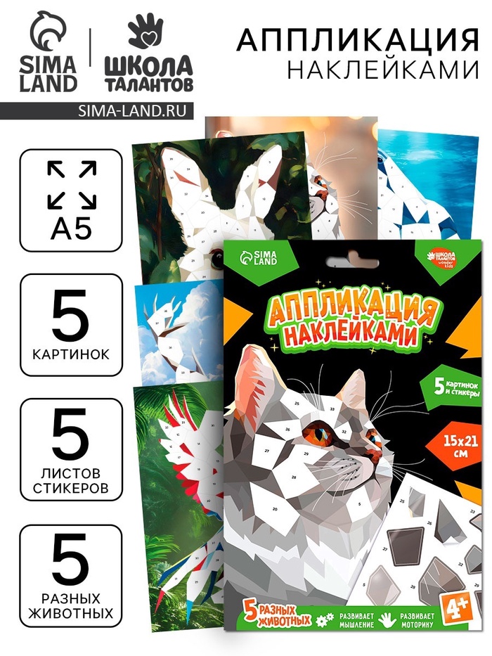 Этот набор позволяет создавать яркие и выразительные изображения животных с помощью наклеек.