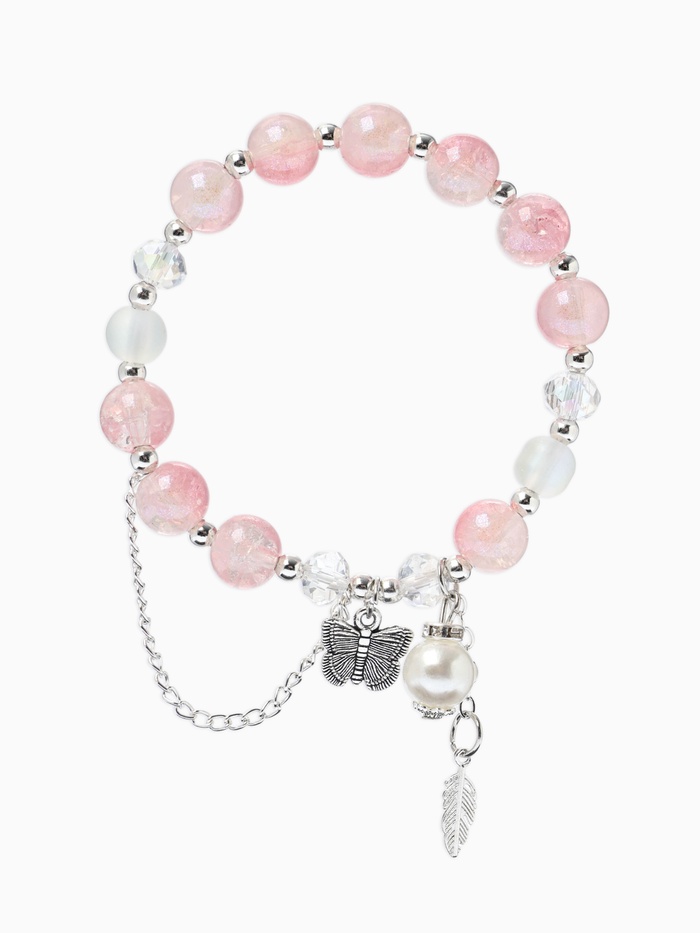 Браслет с подвесками «Сахарный. Бабочка и перо», d=6 см, шар № 10/8, розовый в серебре (артикул 10967931) ЕОНК в категории Браслеты купить по цене 97,90 руб. с доставкой по России | Интернет-магазин EONK.RU Браслеты ЕОНК большой выбор товаров оптом и в розницу по низким ценам с доставкой по России