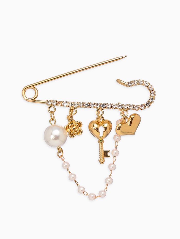 10904663 Булавка "Ключик от сердца", l=6.5, цвет белый в золоте