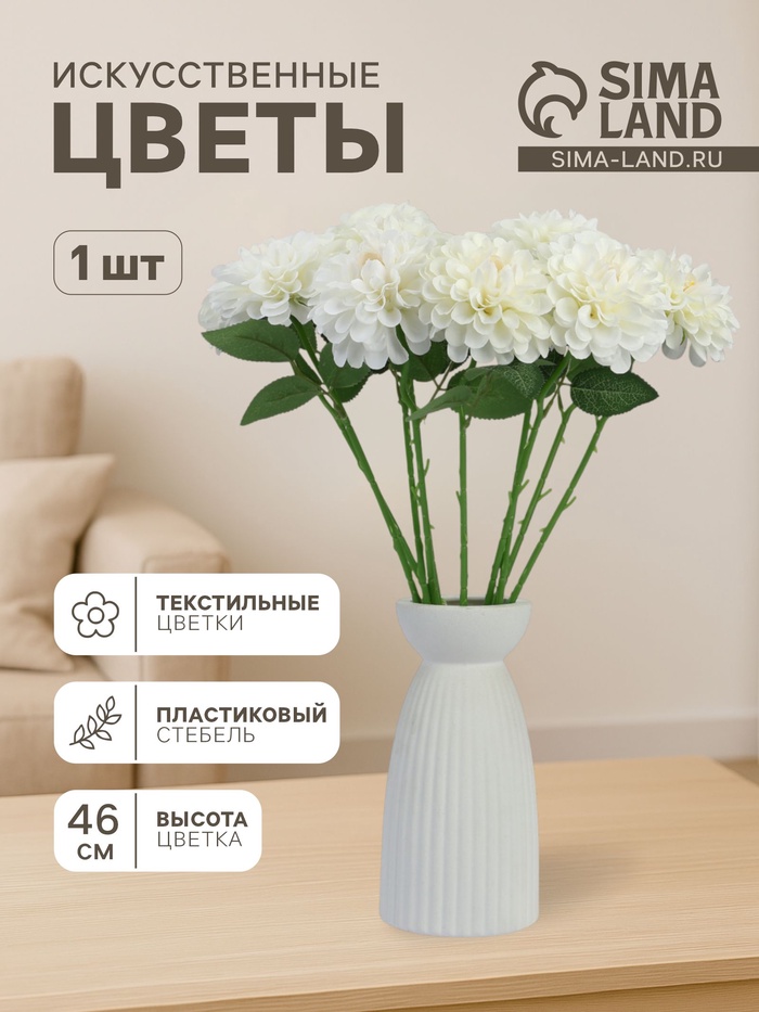 Цветы искусственные «Хризантема Амадея», d=9 см, h=46 см, белые (артикул 10935357) ЕОНК в категории Искусственные флористические элементы купить по цене 73,42 руб. с доставкой по России | Интернет-магазин EONK.RU Искусственные флористические элементы ЕОНК большой выбор товаров оптом и в розницу по низким ценам с доставкой по России