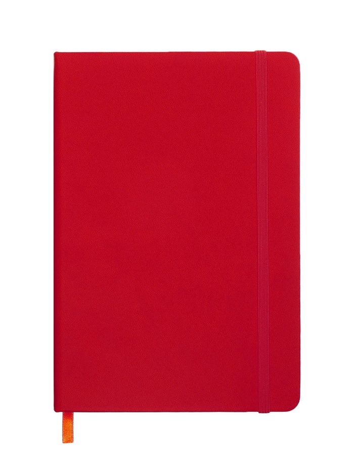 10536976 Ежедневник недатированный A5, 140л, клетка, кожзам, на резинке, черный срез, Красный