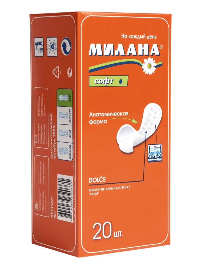 Милана “DOLCE” Софт идеально подходят для повседневного применения, обеспечивая ощущение уверенности, чистоты и комфорта каждый день.