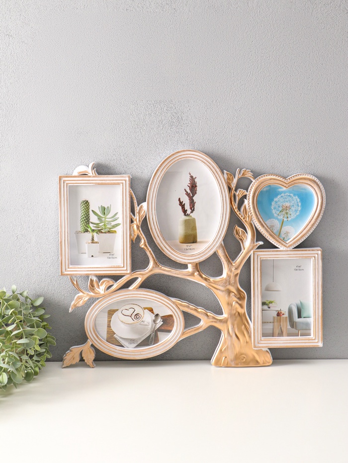 Фоторамка - коллаж на 5 фото 10×15 см, 13×13 см, 13×18 см «Старое дерево», пластик, белая с золотом, 46.5×37.5 см (артикул 10962758) ЕОНК