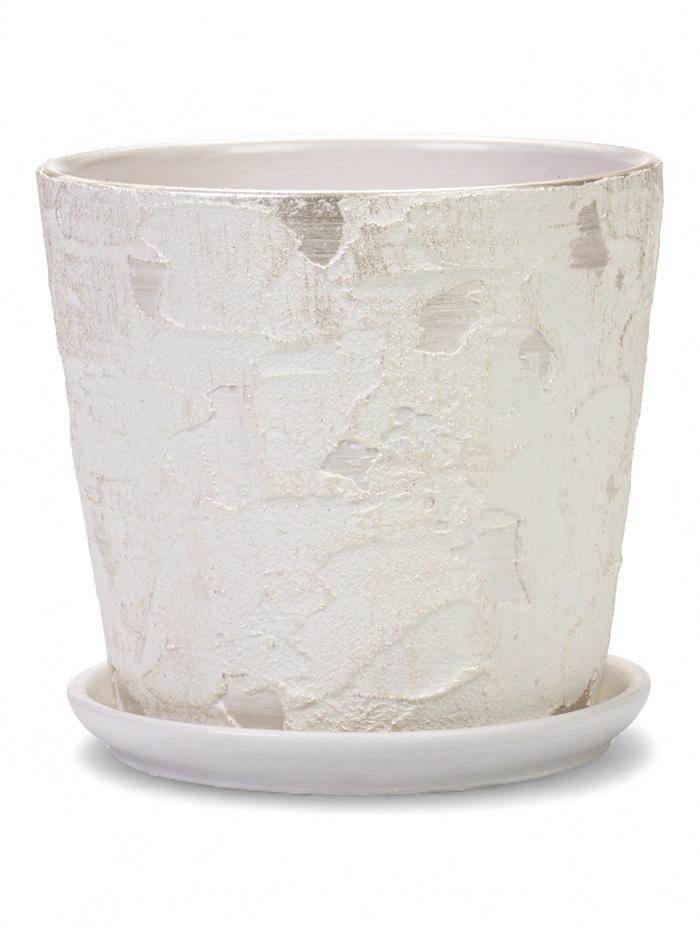 10959218 Горшок цветочный с поддоном 1,45 л, d15/h14 см белый керамика, "Венера" (М)
