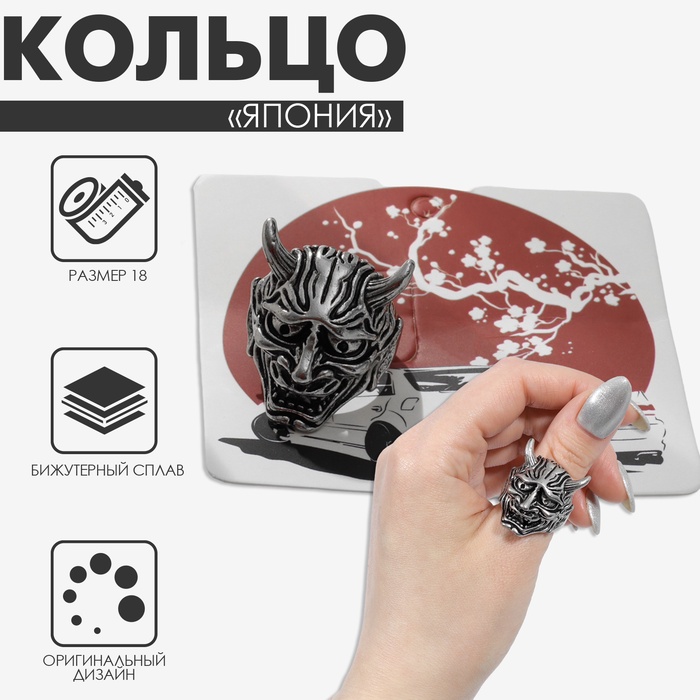 9473086 Кольцо «Япония» два лица, чернёное серебро, 18 размер