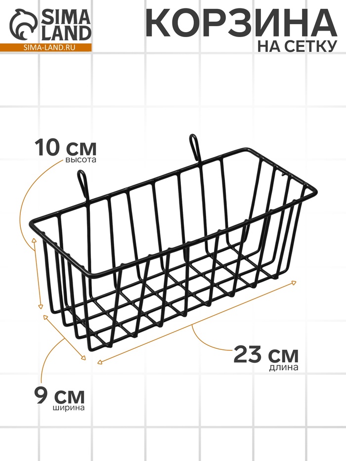 10198394 Корзина на сетку, 23×9×10 см, цвет чёрный