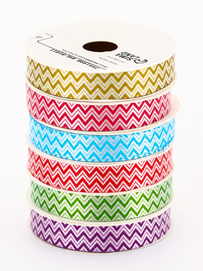 2951998 Лента упаковочная для декора и подарков, зигзаг, МИКС, 1.2 см × 5 м