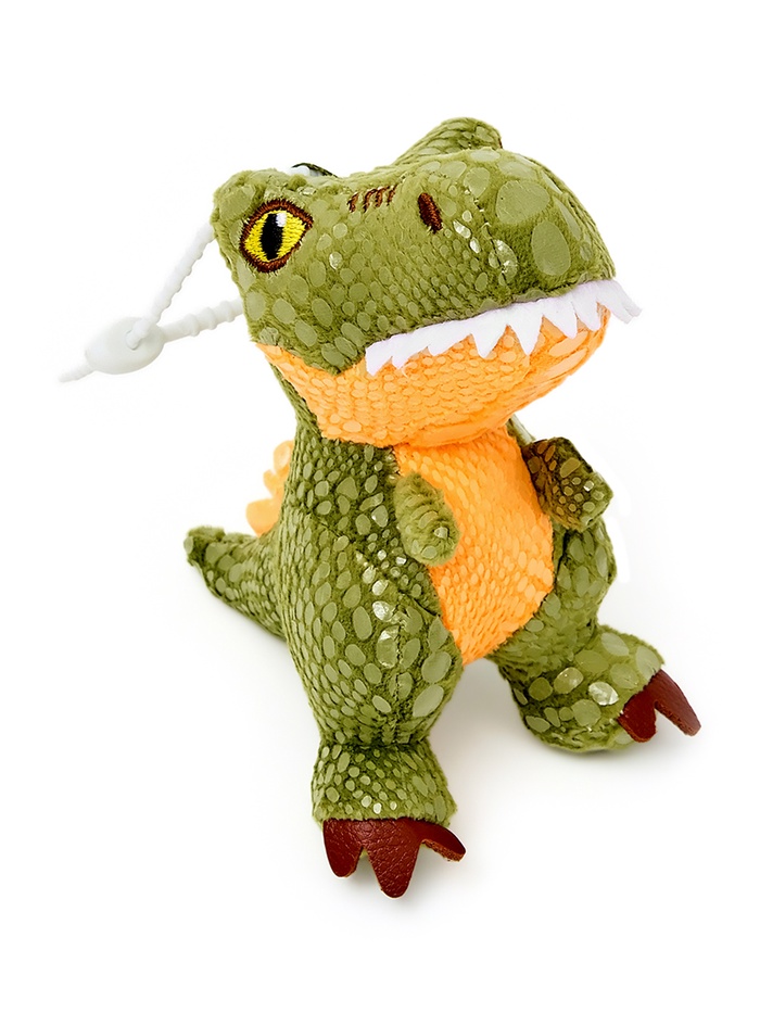 Игрушка выполнена из приятного на ощупь материала с интересной текстурой «под чешую», что делает её ещё более привлекательной для тактильного восприятия. А благодаря удобному подвесу динозаврик всегда будет рядом.