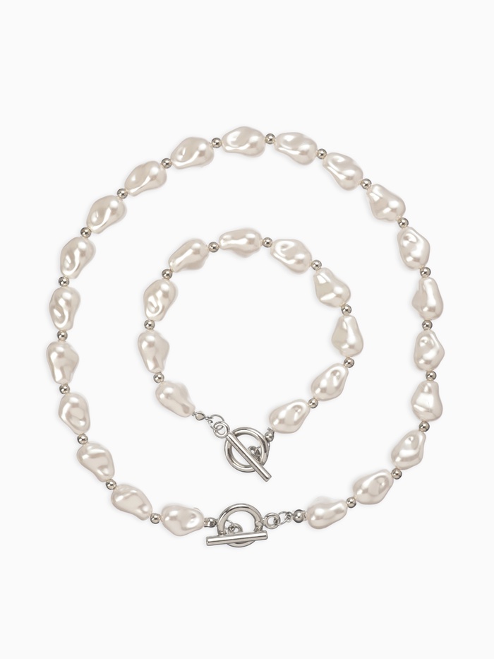 10936571 Набор 2 предмета: бусы, браслет «Жемчуг барочный. Капля», 40/18 см, белый в серебре