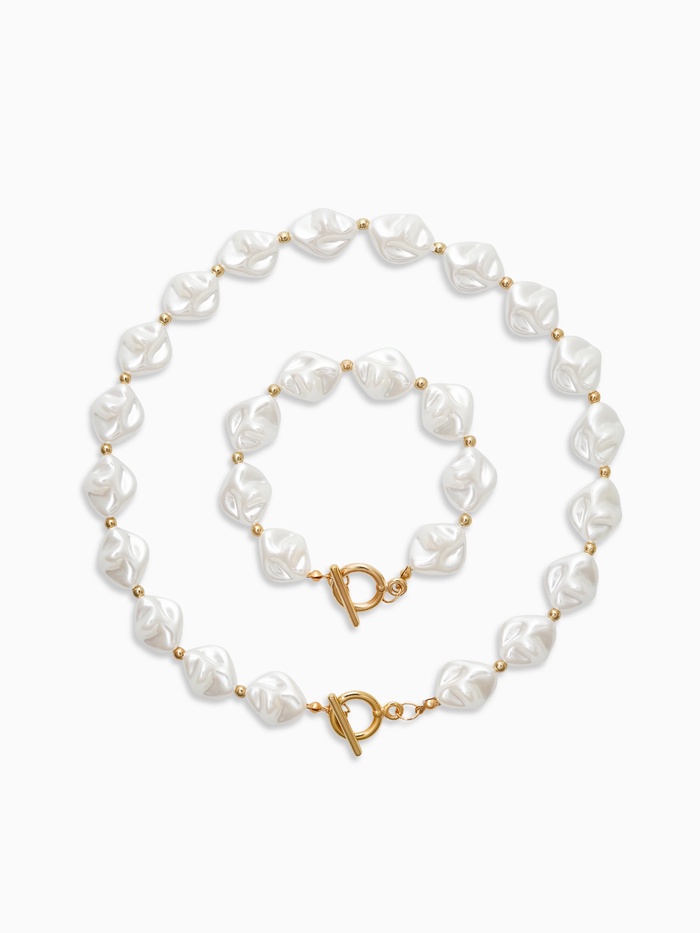10936574 Набор 2 предмета: бусы, браслет «Жемчуг барочный. Ромб», 40/18 см, белый в золоте