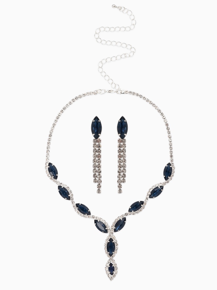 10937457 Набор 2 предмета: серьги, колье «Вечерний шик. Лепестки», белый, синий в серебре
