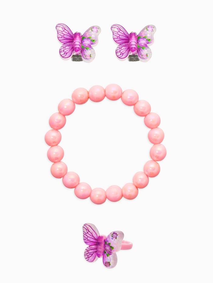 Набор детский "Выбражулька" 3 предмета: клипсы, кольцо, браслет, бабочки, цвет розовый (артикул 10937154) ЕОНК