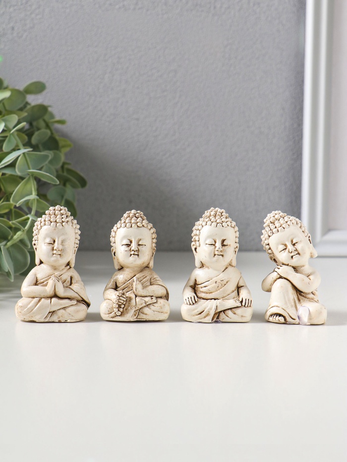 Набор фигурок 4 шт. «Медитация маленького Будды», полистоун, беж, 3×3.5×6 см (артикул 10956746) ЕОНК в категории Нэцкэ и статуэтки купить по цене 295,90 руб. с доставкой по России | Интернет-магазин EONK.RU Нэцкэ и статуэтки ЕОНК большой выбор товаров оптом и в розницу по низким ценам с доставкой по России