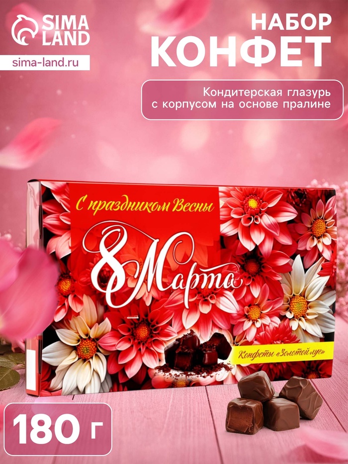 Набор конфет «Золотой луг: С праздником весны 8 Марта», 180 г (артикул 10986489) ЕОНК