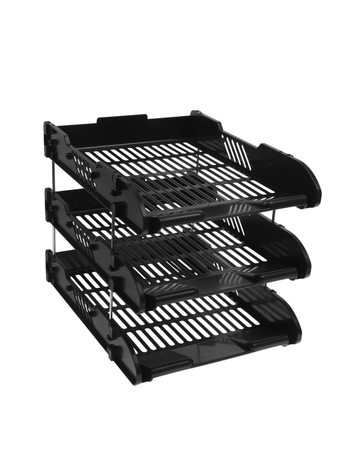 Набор лотков для бумаг, 3 штуки, горизонтальные, на металлических стержнях, чёрные (артикул 10970387) ЕОНК