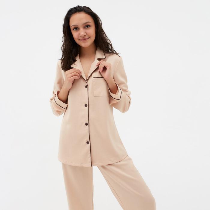4880034 Пижама женская (сорочка, брюки) MINAKU: Light touch цвет бежевый, р-р 52
