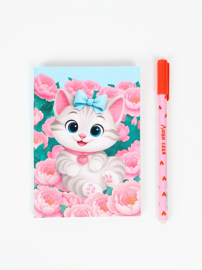 Подарочный набор: блокнот раскраска А6, 32 л.и ручка пиши-стирай "Кошка" (артикул 10895196) ЕОНК