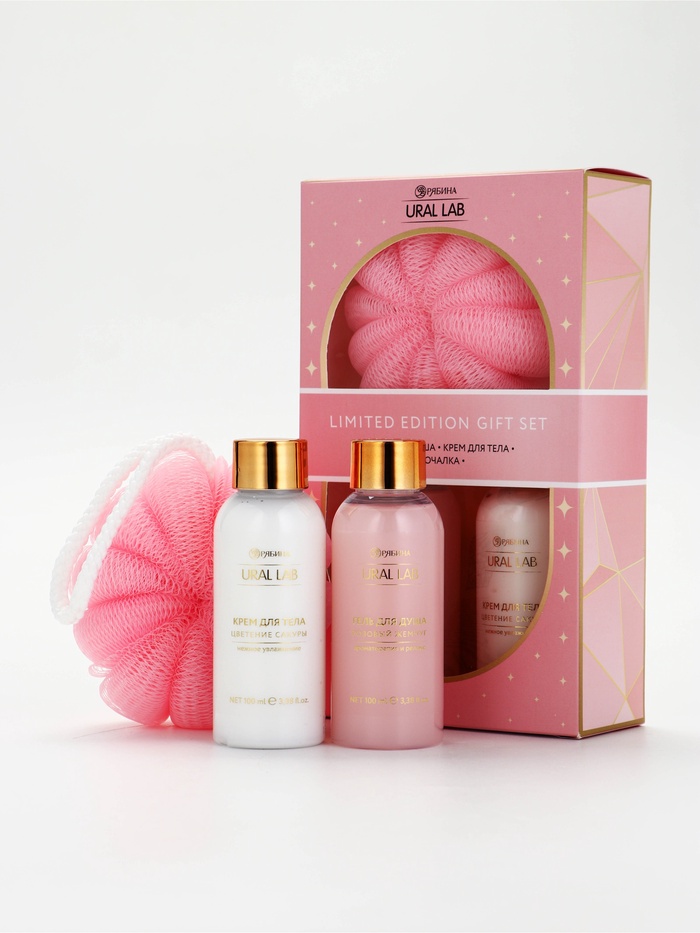 Подарочный набор: гель для душа и крем для тела 2 шт х 100 мл, мочалка, URAL LAB (артикул 10901149) ЕОНК