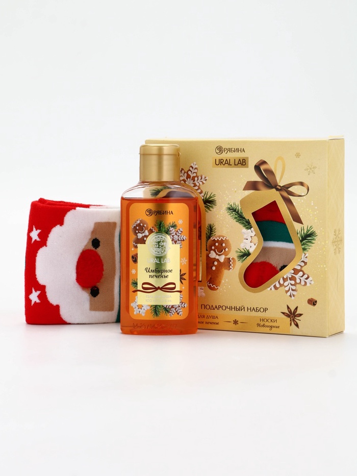 10885095 Подарочный набор новогодний «Ароматы праздника», гель для душа, печенье, 100 мл и носки, URAL LAB