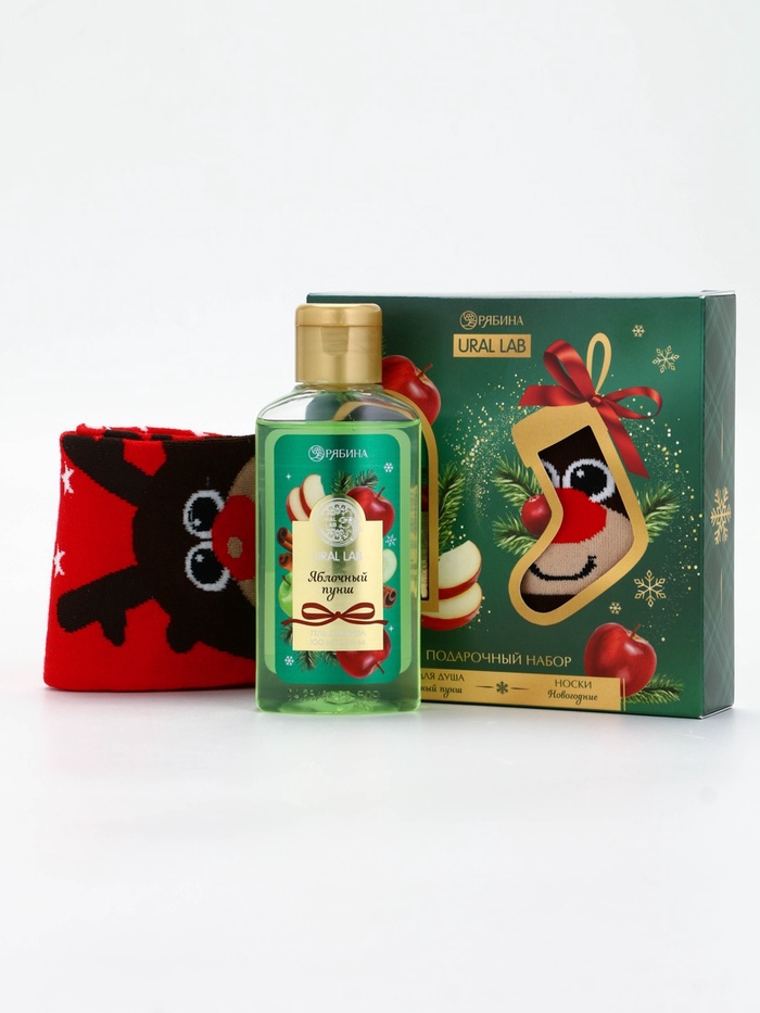 10885093 Подарочный набор новогодний «Ароматы праздника», гель для душа, яблоко, 100 мл и носки, URAL LAB