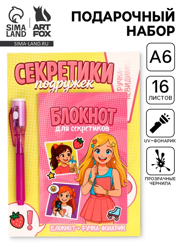 10900533 Подарочный набор, ручка шпион, блокнот А6, 16 л. «Секреты подружек»