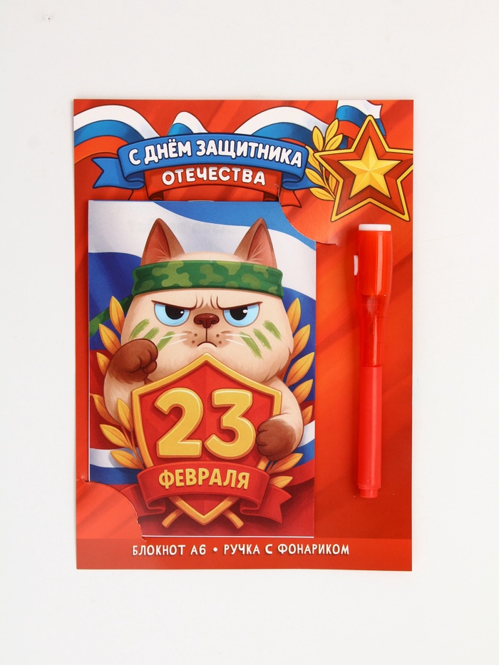 10900529 Подарочный набор «С 23 февраля», ручка с фонариком и невидимыми чернилами, блокнот А6, 16 л