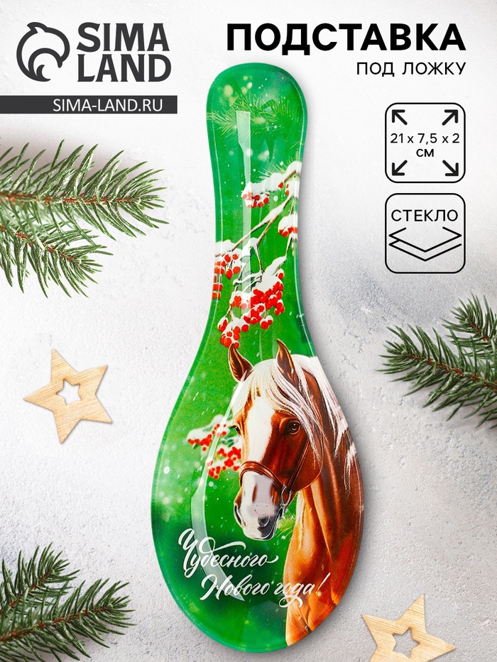 Новогодняя стеклянная подставка под ложку размером 21 х 7,5 х 2 см — отличный выбор для вашей кухни.