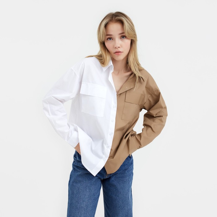Рубашка женская MIST р.44-46, белый/бежевый (артикул 7394845) ЕОНК
