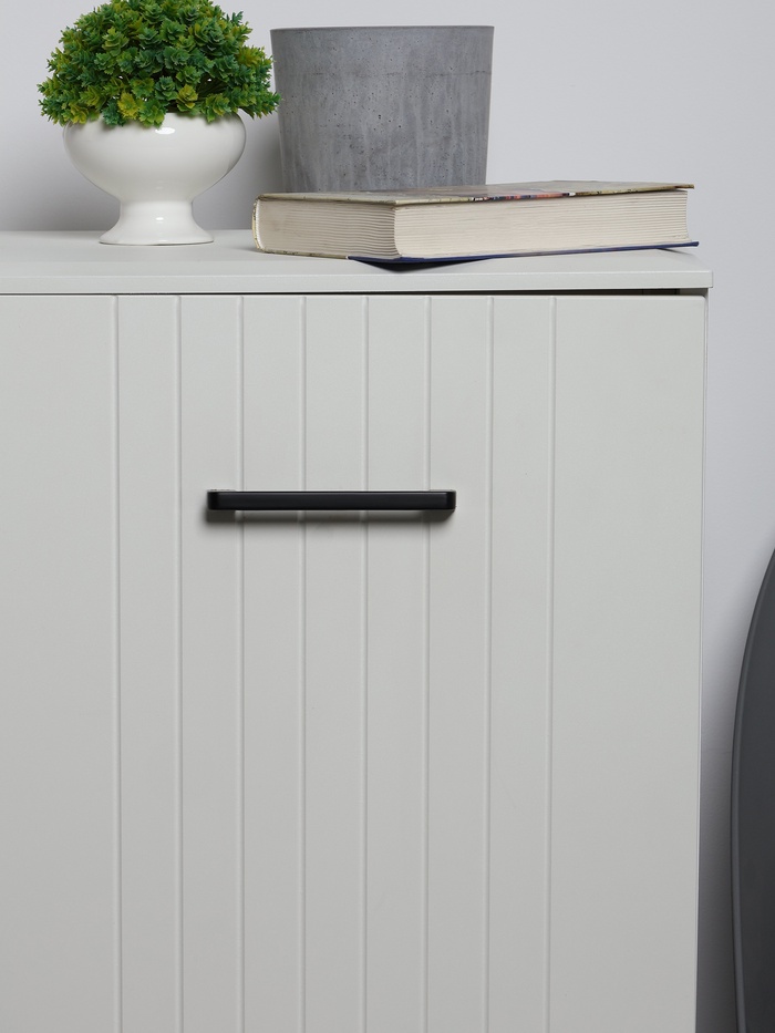 - Оптимальное межосевое расстояние: 128 мм – стандартный параметр, подходящий для большинства шкафов и ящиков. Легко устанавливается на мебель с соответствующими отверстиями, сохраняя гармонию дизайна.