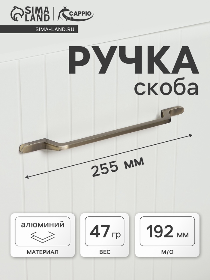 Практичность в деталях: Длина ручки 255 мм обеспечивает удобный захват, что особенно важно для крупной мебели с частым доступом. Простота монтажа и долговечность делают эту модель оптимальным выбором для ремонта или производства новой мебели.