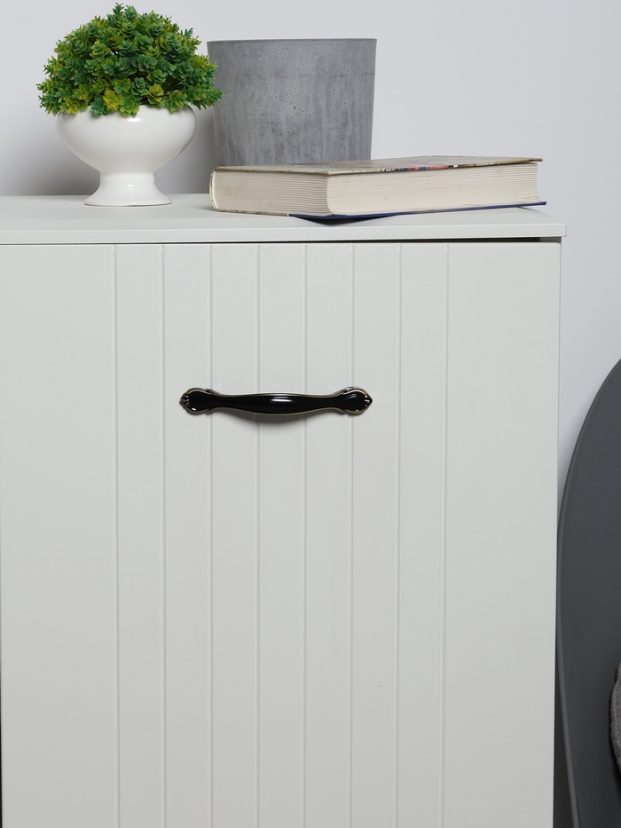 Металлическая ручка-скоба, межосевое расстояние 96 мм, выполнена в стильной комбинации черного и золотого цветов. Общая длина составляет 140 мм, что делает её идеальным выбором для большинства типов шкафов и ящиков. Безупречное сочетание классического дизайна и прочности.