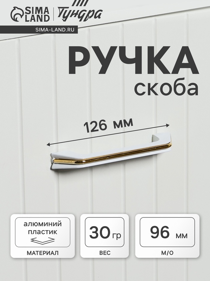 Ручка-скоба мебельная, м/о 96 мм, цвет белый, с золотой вставкой (артикул 6074975) ЕОНК