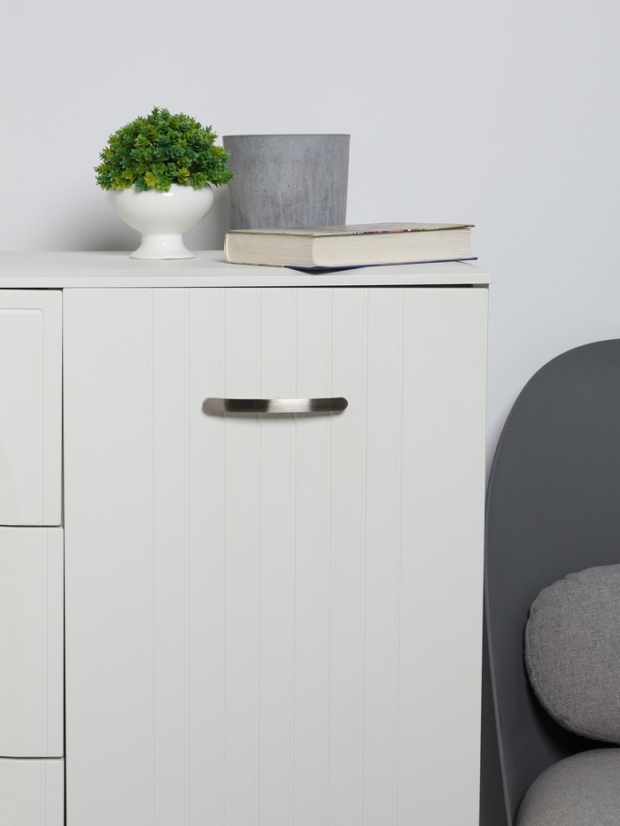 Интересный дизайн ручки сочетается с различными типами мебельного гарнитура. Фурнитура имеет привлекательный внешний вид и компактный размер. Оттенок «матовый никель» идеально подходит к мебельным фасадам в различной цветовой гамме.