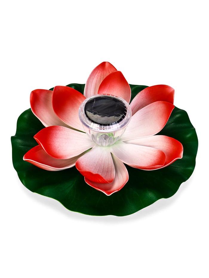 10933413 Садовый светильник для водоемов 28 х 28 х 9 см на солнечной бат-е "Лотос" красный N008