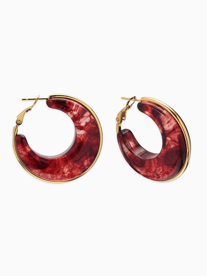 10936437 Серьги-кольца акрил "Тренд", цвет бордовый в золоте