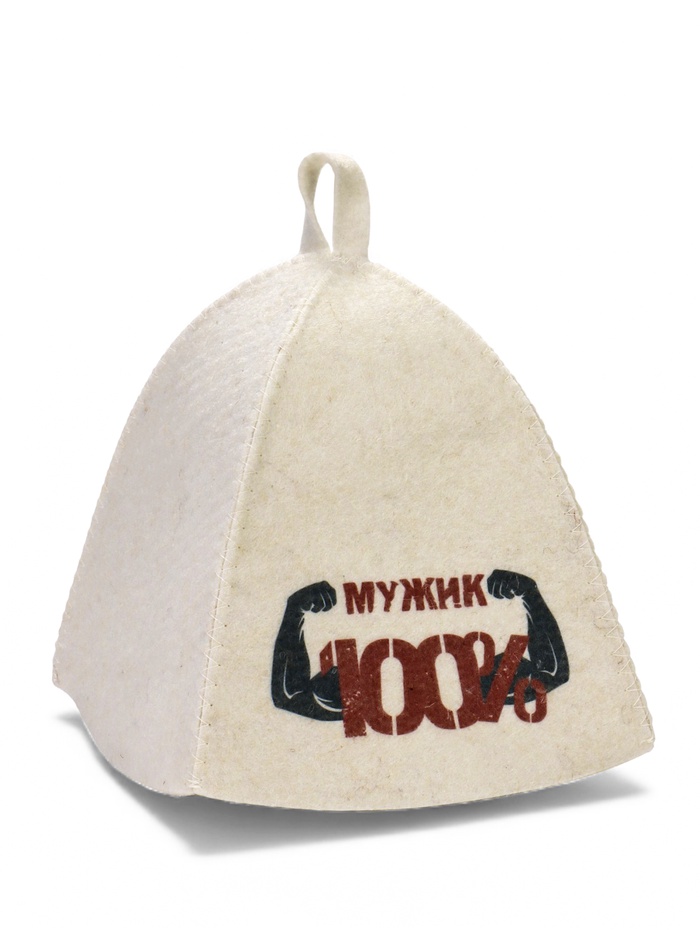 Банная шапка «100% мужик. Мышцы» из шерсти и полиэфира — мужской аксессуар для защиты в парной. Она предохраняет голову от перегрева, помогая дольше и комфортнее переносить жар бани или сауны.