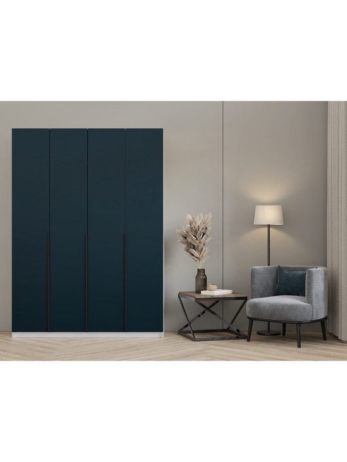 Просторный и стильный шкаф для спальни, гостиной или прихожей. Модель выполнена в выразительном сочетании оттенков: чистый белый и глубокий зелёно-синий создают эффектный контраст, придающий мебели современный и запоминающийся образ.
