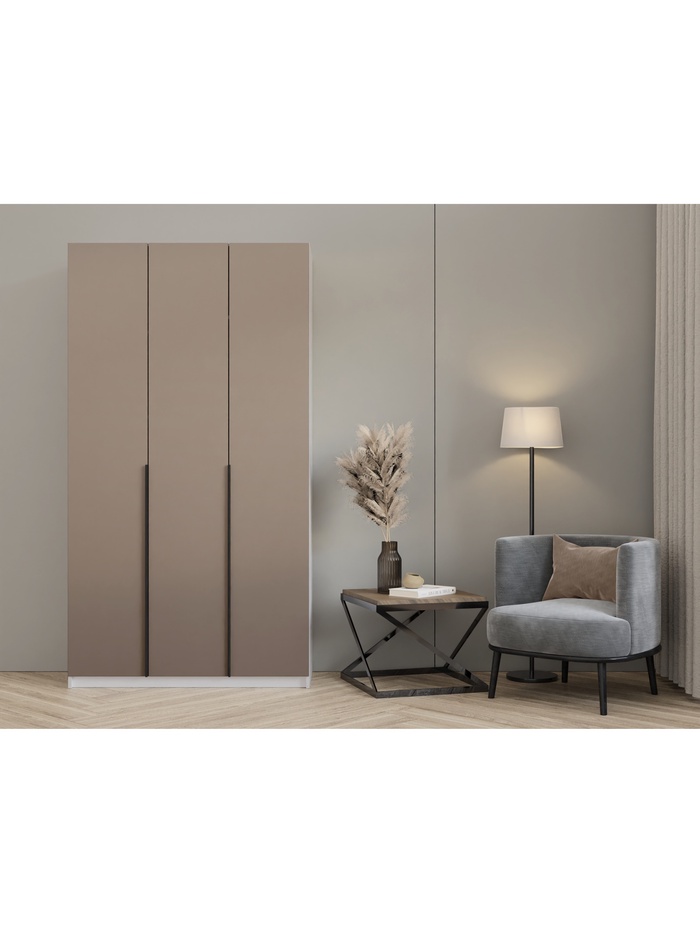 Вместительный и элегантный шкаф для спальни, гостиной или прихожей. Модель выполнена в стильном сочетании оттенков: чистый белый и благородный мокко создают выразительный контраст, придающий мебели современный и утончённый характер.