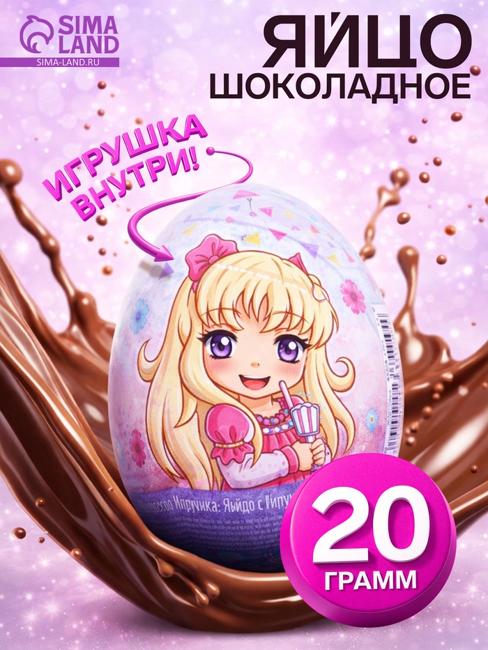 Шоколадное яйцо из кондитерской глазури «Забавный Сюрприз» для девочек, 20 г (артикул 6534467) ЕОНК