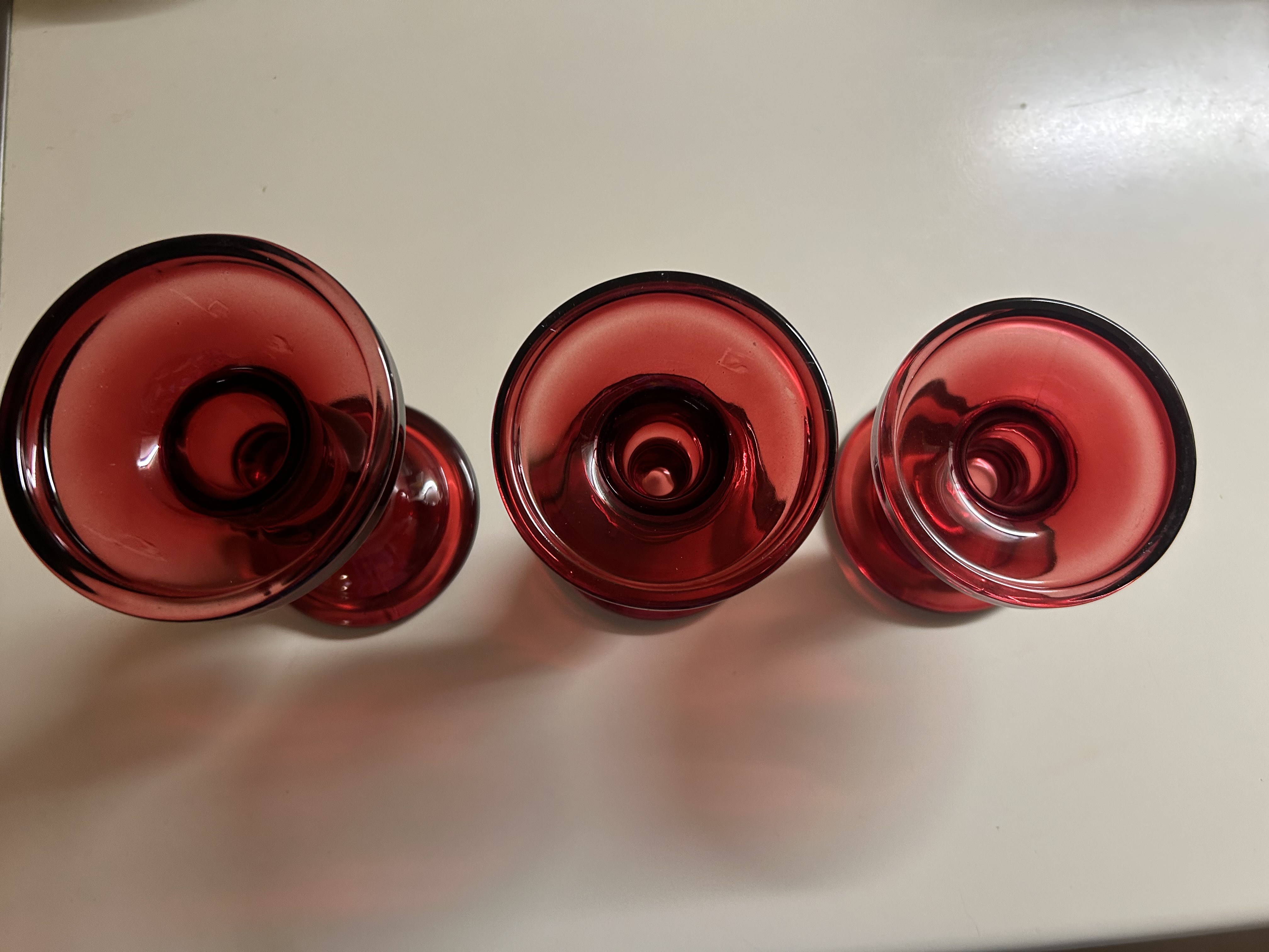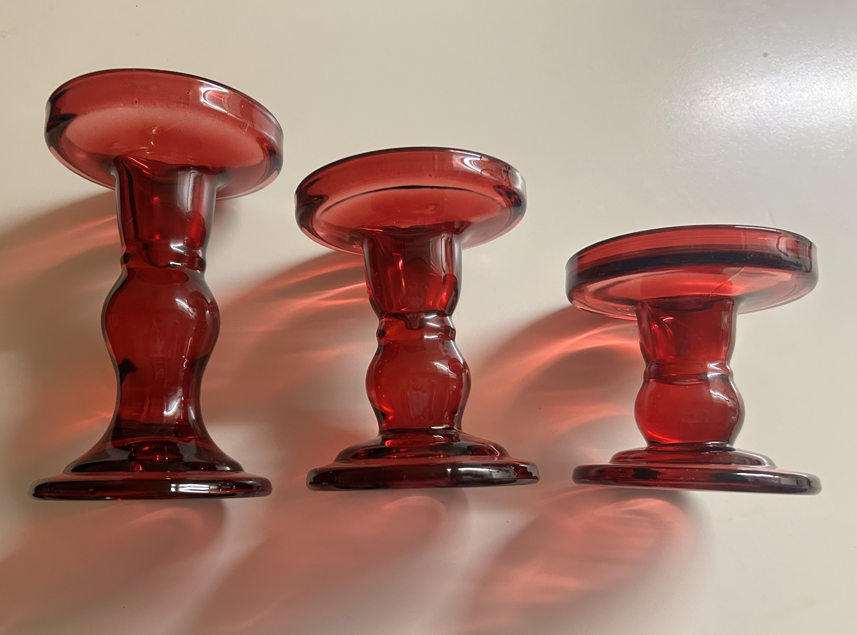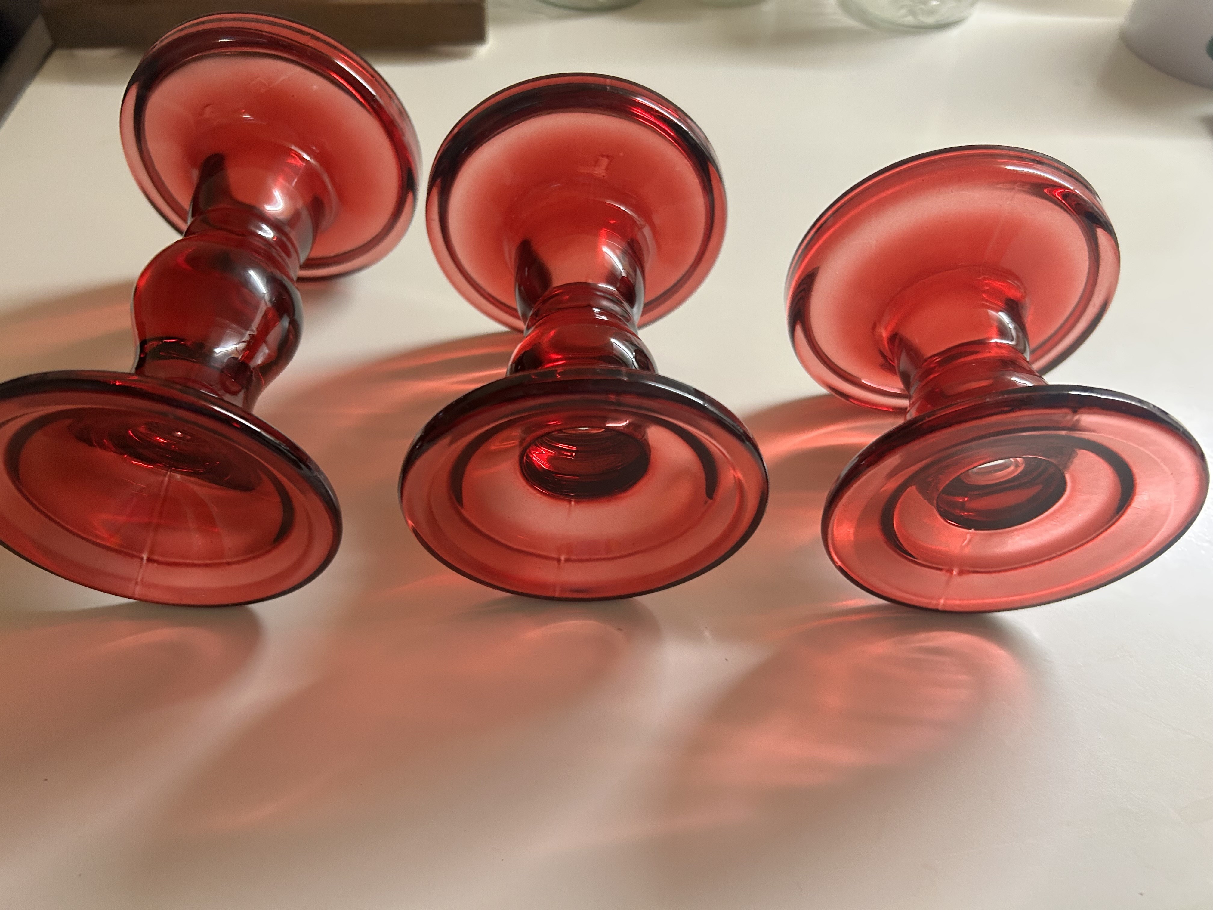 4543425 Стеклянный подсвечник на 1 свечу «Креманка», набор 3 шт., красный, h=8.5, см 11.4 см, 14×8.5×8.5 см