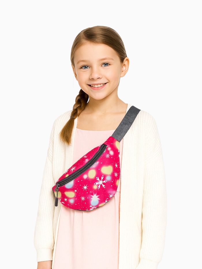 Эта детская поясная сумка станет верным спутником для прогулок и путешествий. Её компактный размер идеально подходит для ребёнка, а яркий малиновый цвет с космическим принтом нравится девочкам. Сумка удобно лежит на поясе, не сползает и не мешает активным играм.
