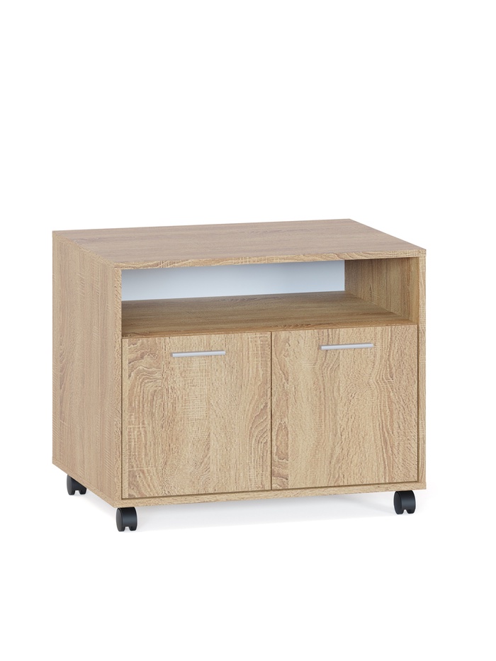 Модель оснащена открытой нишей для быстрого доступа к часто используемым предметам, а также закрытым отделением с распашными дверцами для аккуратного хранения документов и различных вещей. Просторная столешница позволяет использовать тумбу как дополнительную рабочую поверхность.