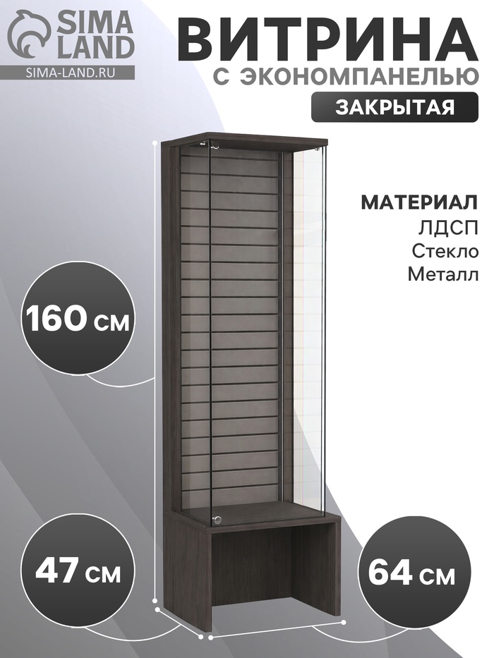 Витрина закрытая с экономпанелью, 64×47×160, ЛДСП, стекло, цвет венге (артикул 10354379) ЕОНК